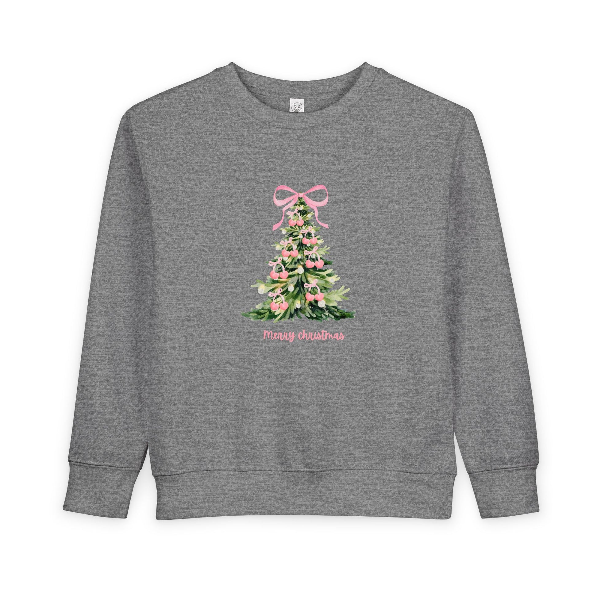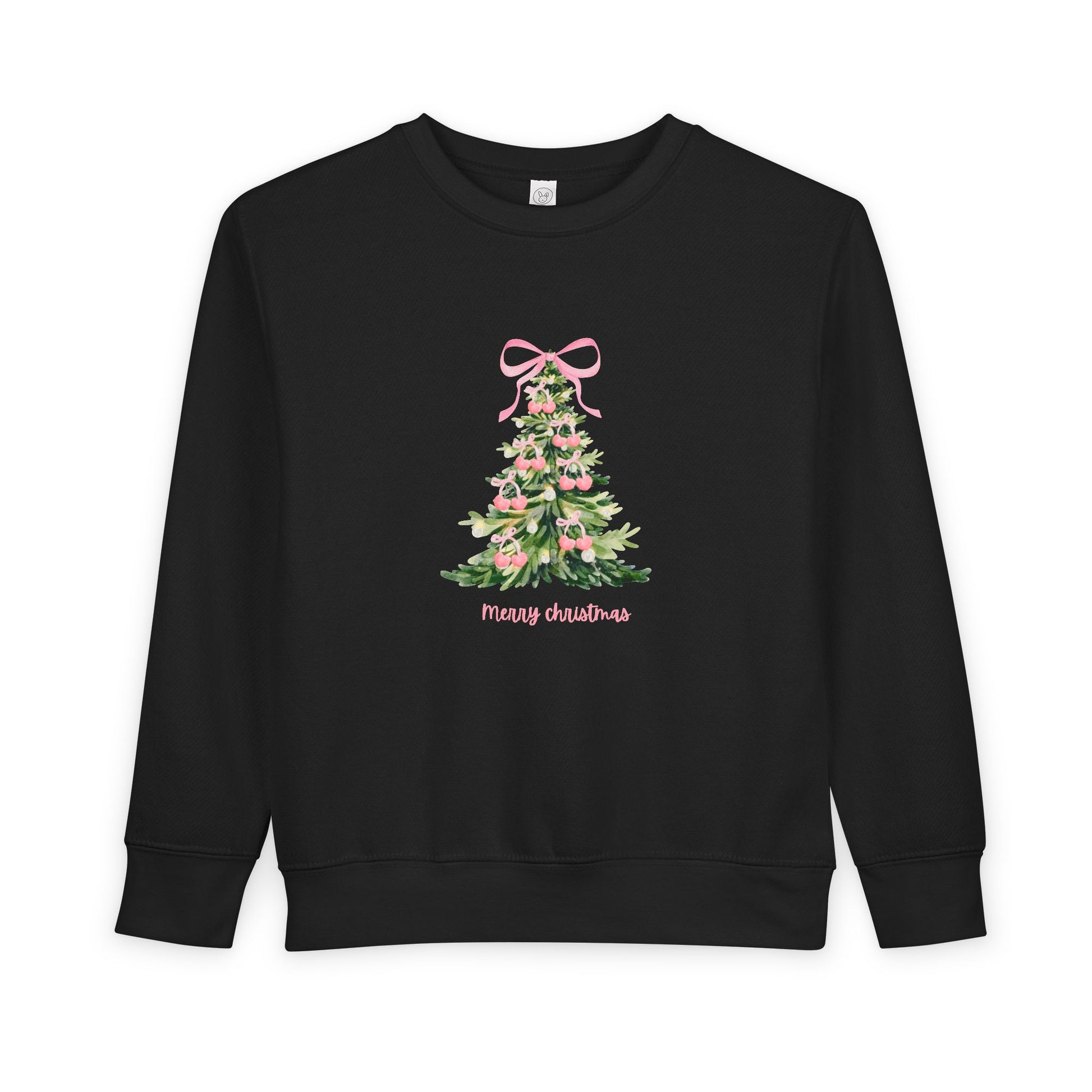 Christmas Tree Pink Cherry Bow Toddler Sweatshirt
