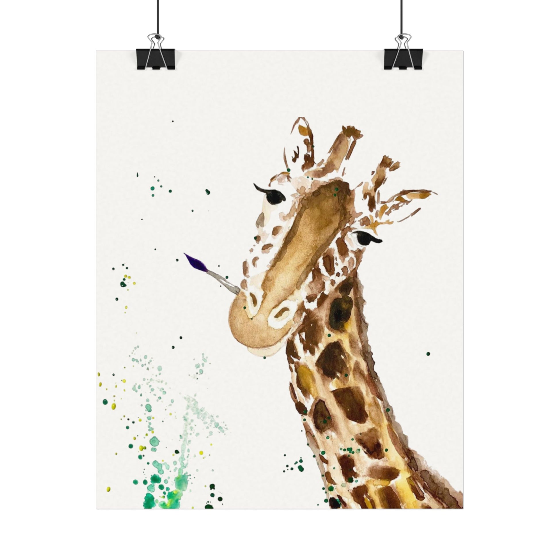 Soft, painterly watercolor brings a gentle, whimsical touch to any wall. This textured matte poster shows a curious giraffe rendered in warm earth tones and playful splatters of green — like a peek into an artist’s sketchbook. The heavy 285gsm watercolor paper and archival inks give depth to each wash and keep colors vivid over time, while the subtle surface texture adds tactile presence without glare. Hang it in a nursery, studio, or living room to add a relaxed, creative moment that feels both handmade and gallery-ready.