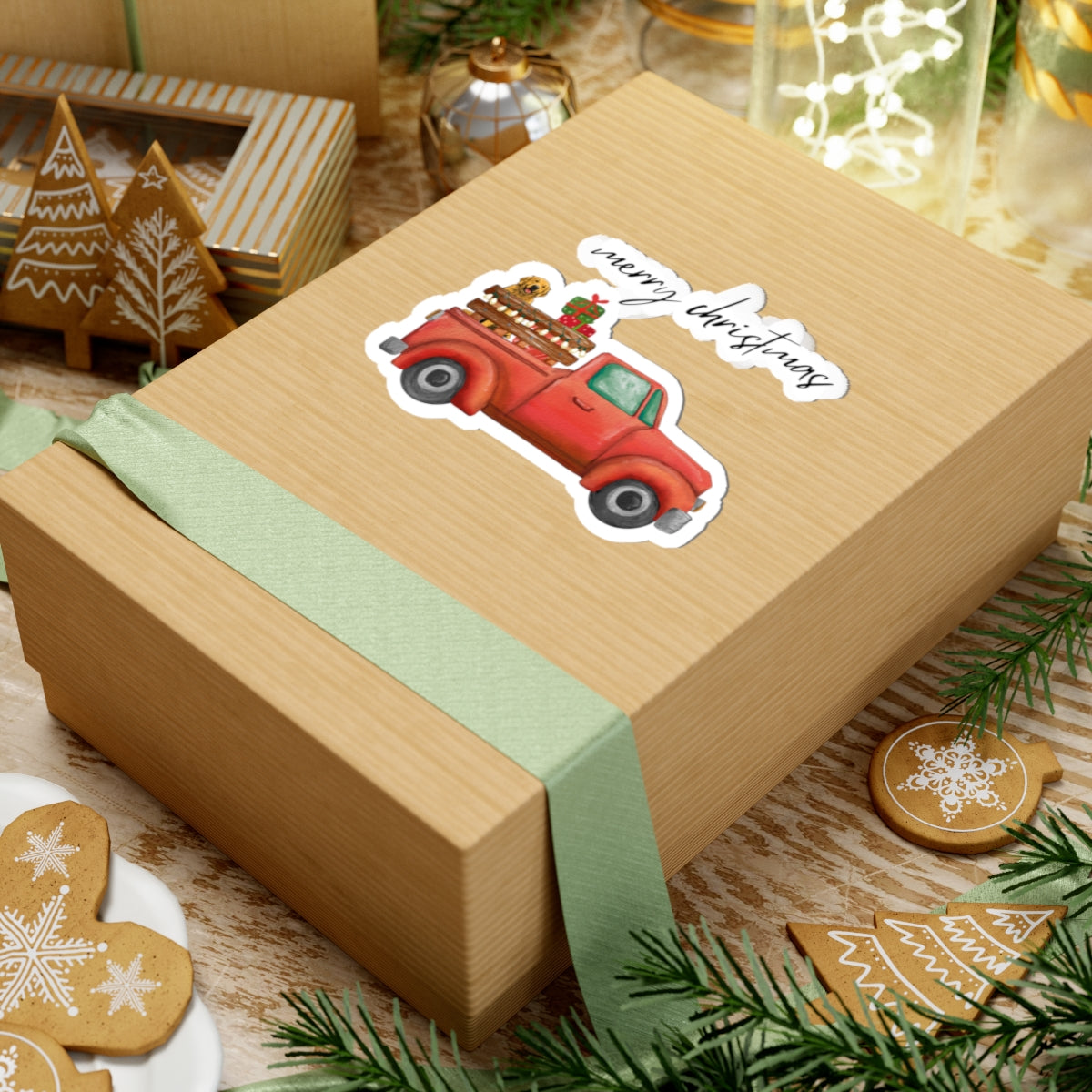 Merry Christmas Truck w/ Presents and Dog Kiss-Cut Stickers