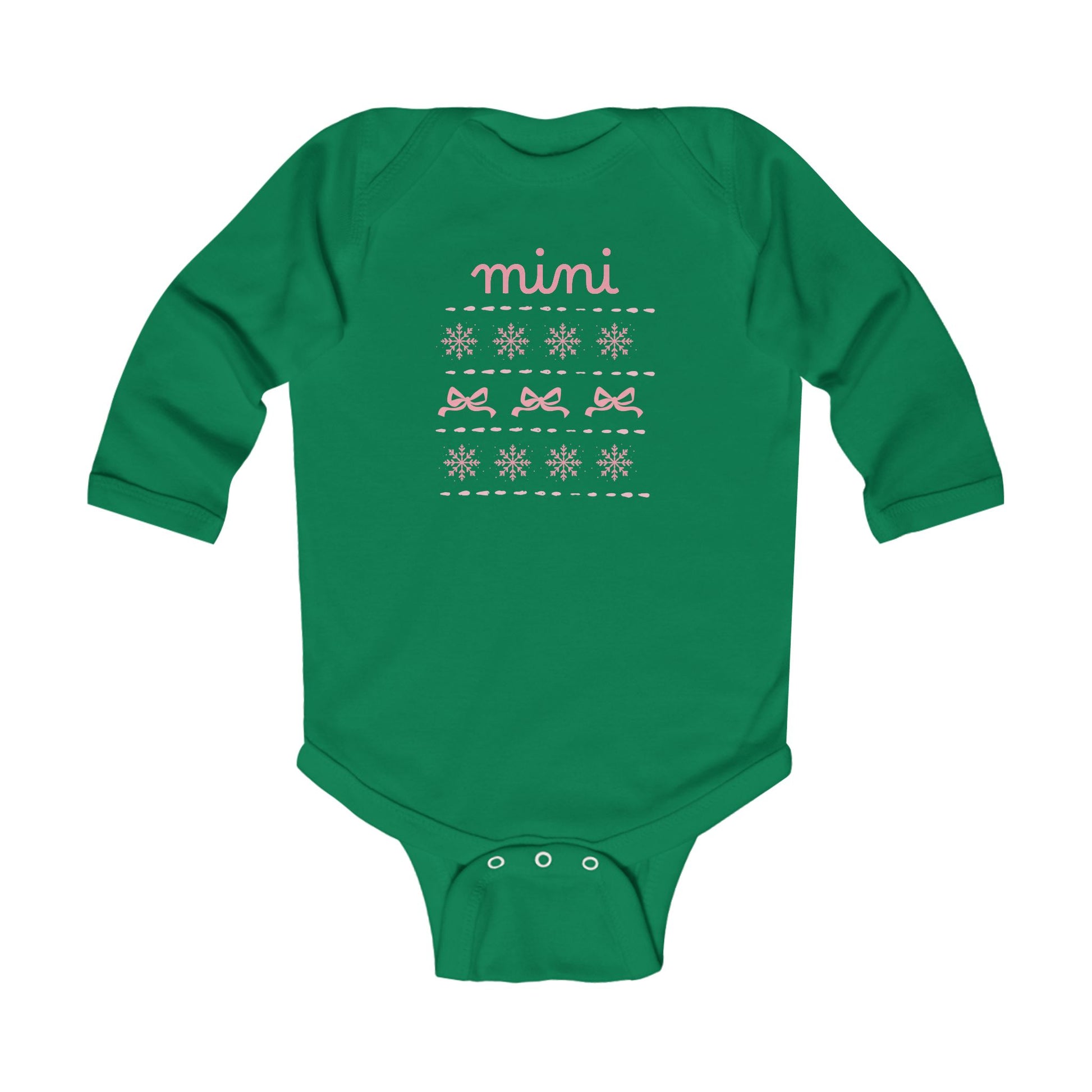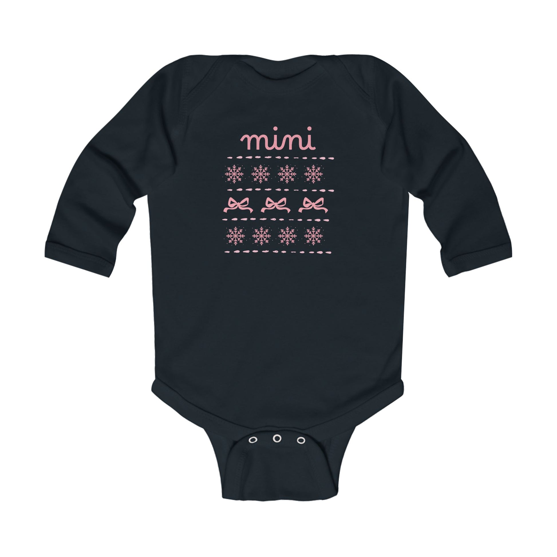 Mini Christmas Infant Bodysuit - Pink Snowflake and Bow Baby Onesie (Long Sleeve)