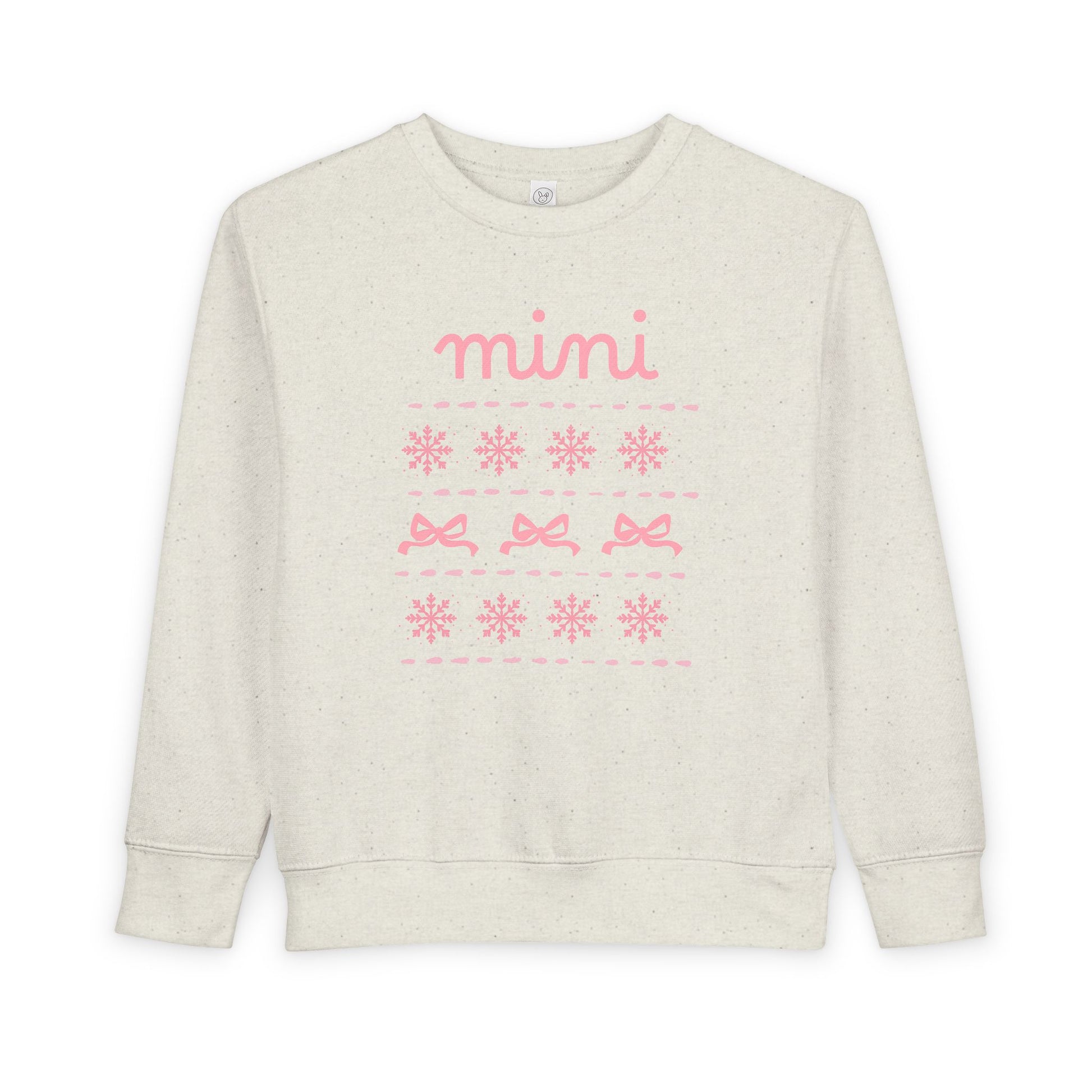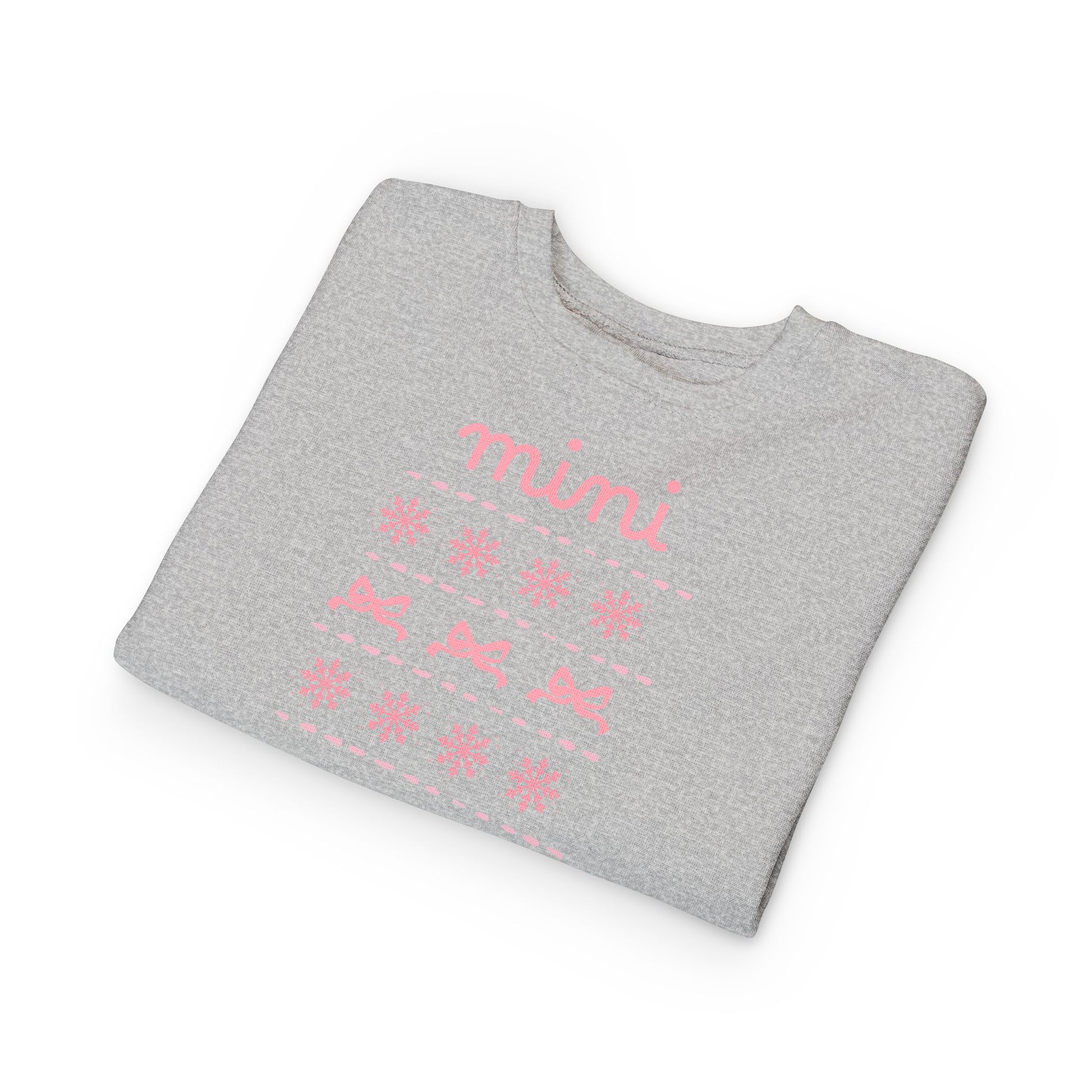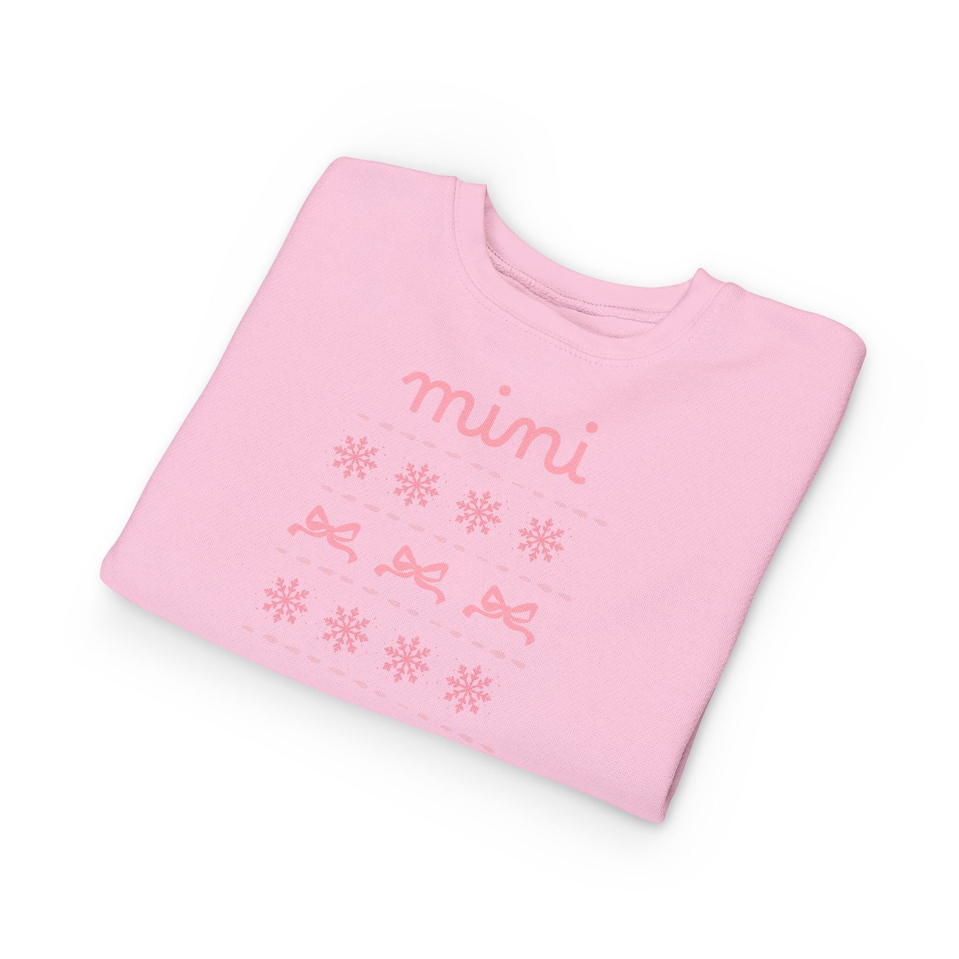 Mini Christmas Toddler Sweatshirt — Pink Bow & Snowflake Cozy Pullover