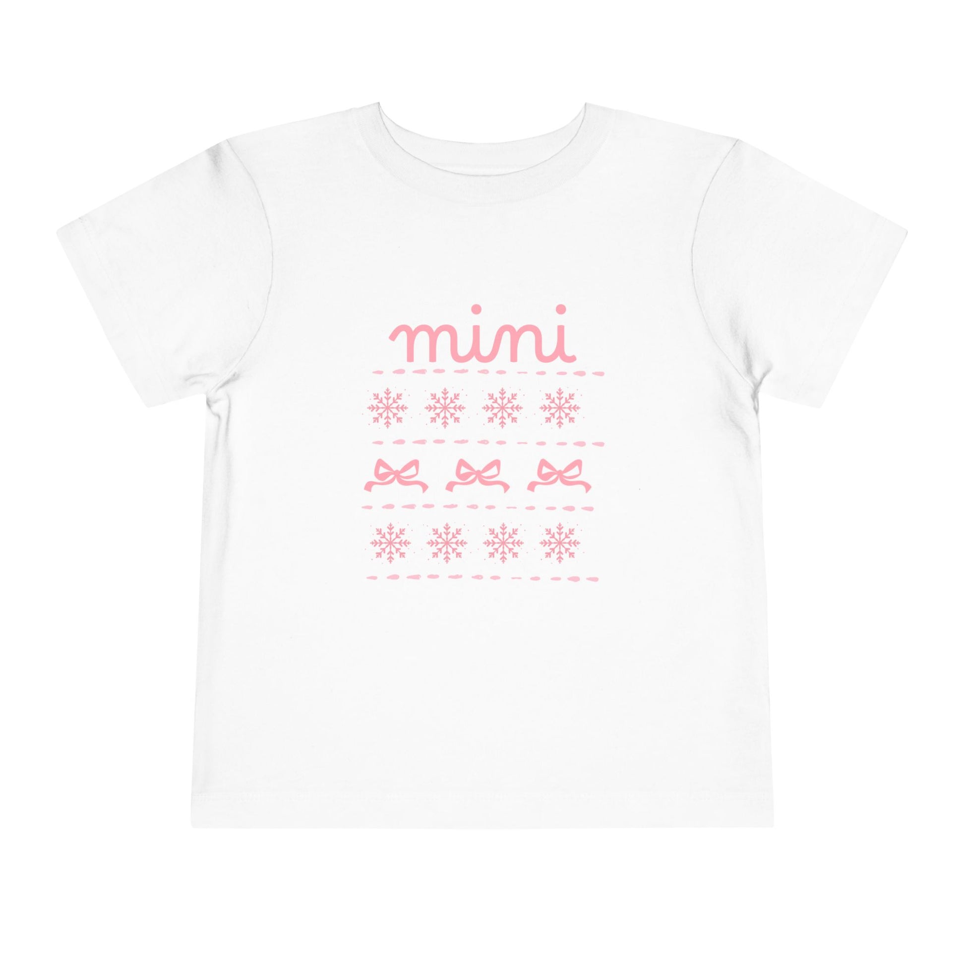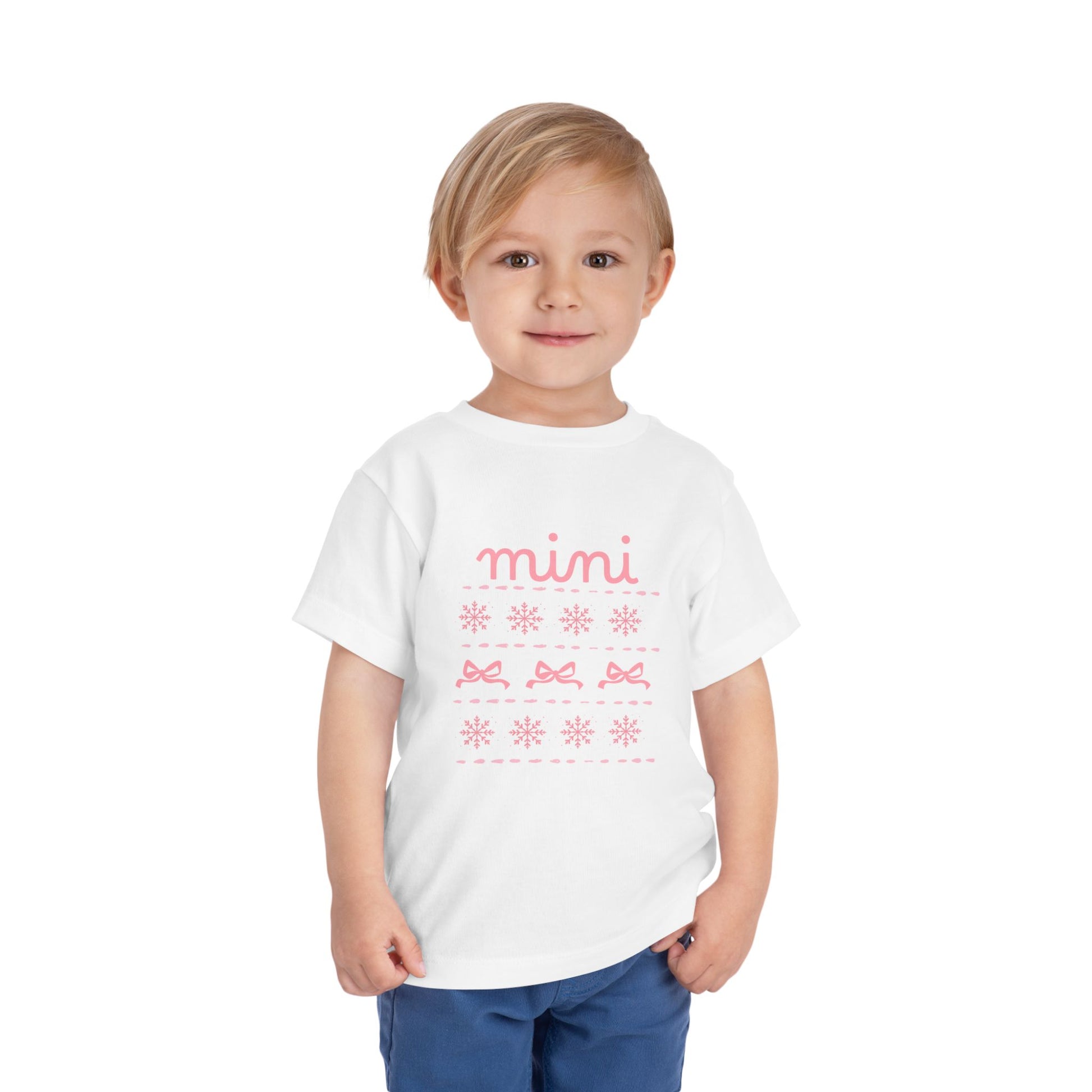 Mini Christmas Toddler Tee — Pink Bow & Snowflake Pattern Kids' Short Sleeve Shirt