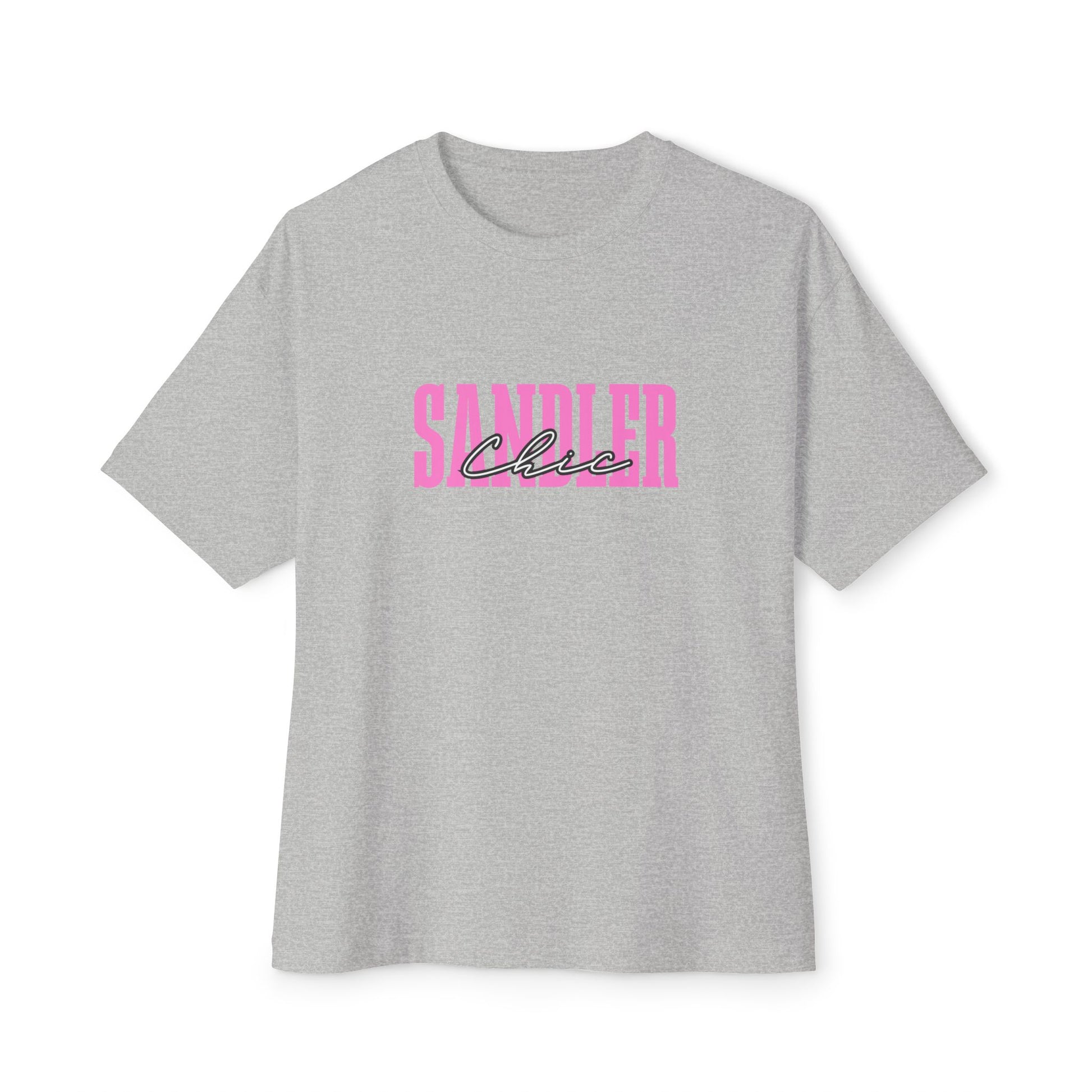 A relaxed, boxy tee that reads like a soft declaration. Lightweight yet substantial, the shirt’s roomy cut and dropped shoulders create an easy silhouette that drapes over jeans or a midi skirt. The front’s bold pink block text paired with a tossed-script accent gives it a playful, retro-meets-street vibe—bright without shouting. Wear it when you want an outfit that feels casual but considered: running errands with a coffee, layering under an open shacket at weekend markets, or lounging with friends on a slow Sunday. The medium-weight cotton and clean finishes mean it moves with you, keeps its shape, and feels comfortable all day.