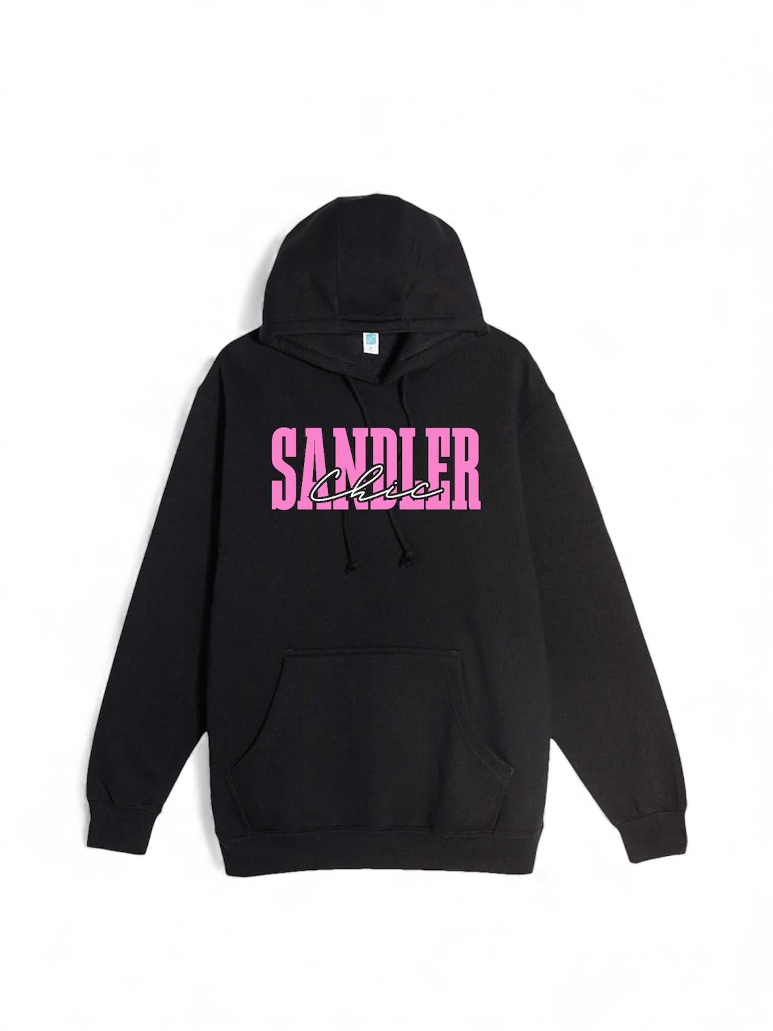Sandler Chic Oversized Hoodie — Pink Retro Script Pullover